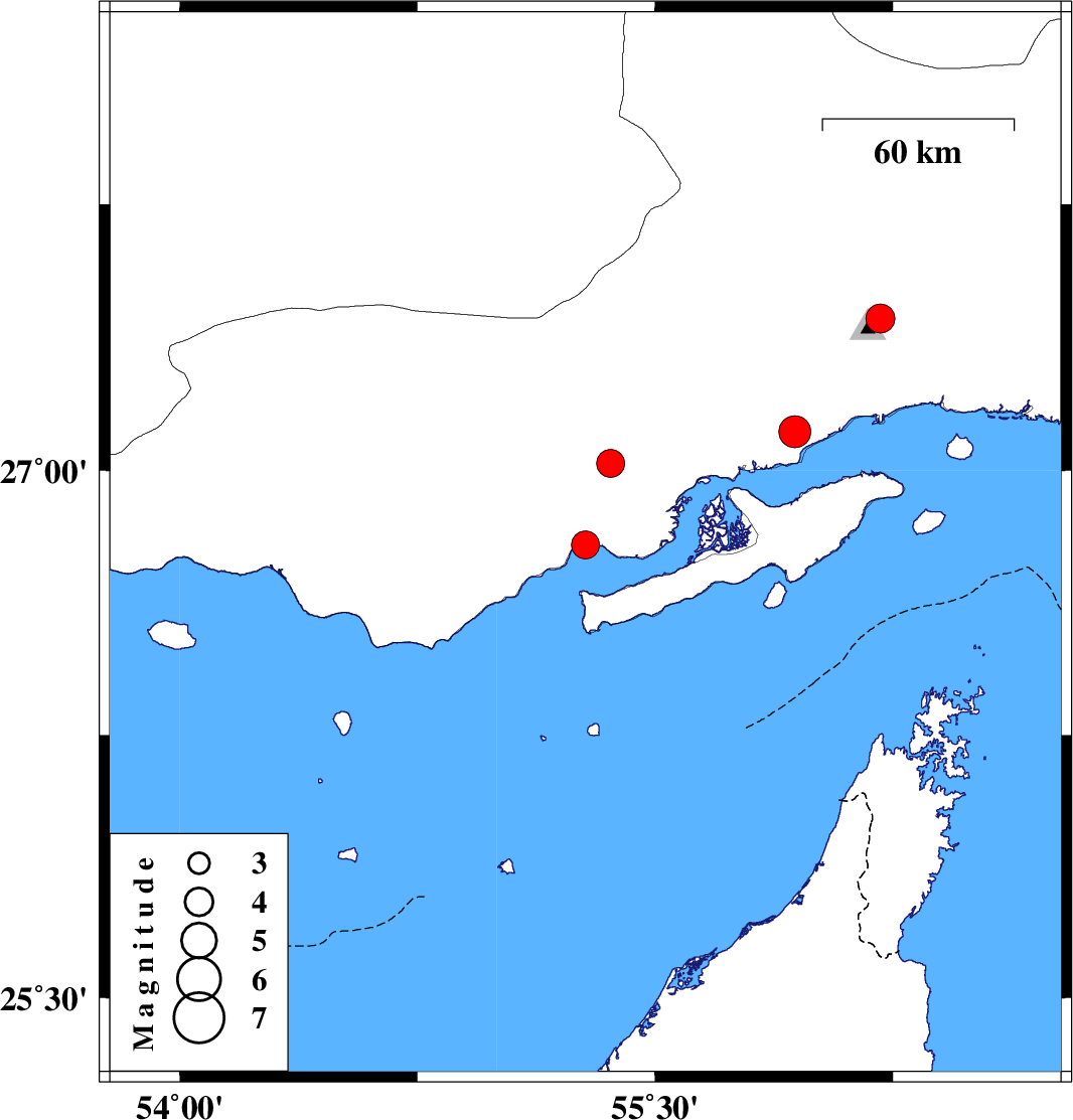 2019/04/16 | 05:42:15.0 | 10:12:15.0 | 27.02 | 55.36 | 32 | Mb:4 | Hormozgan Province, 90 km -West of Qeshm |