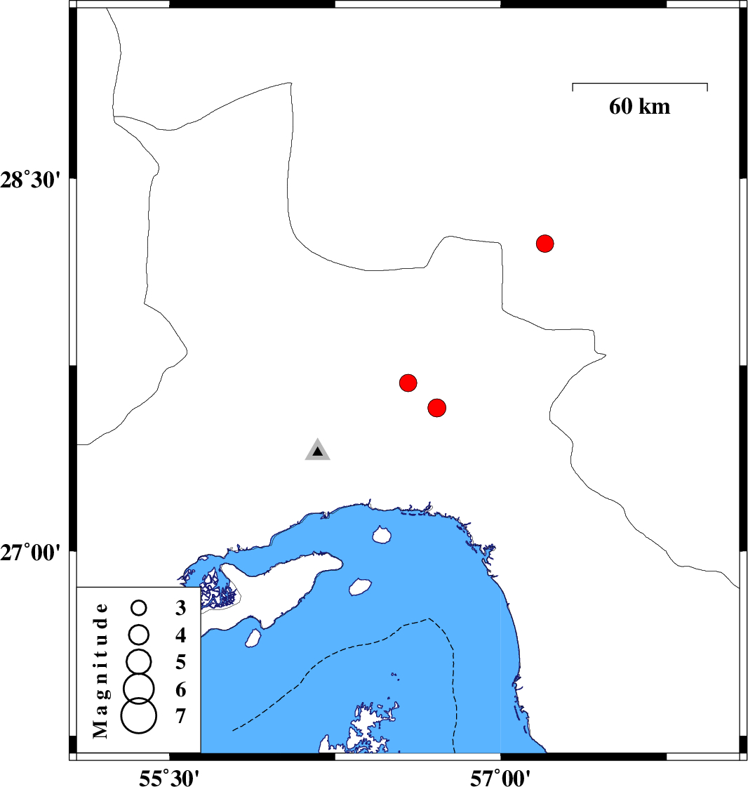 2019/05/31 | 04:16:01.9 | 08:46:01.9 | 27.68 | 56.58 | 10 | ML:3.5 | Hormozgan Province, 63 km North-East of Bandar-e abbas | ||