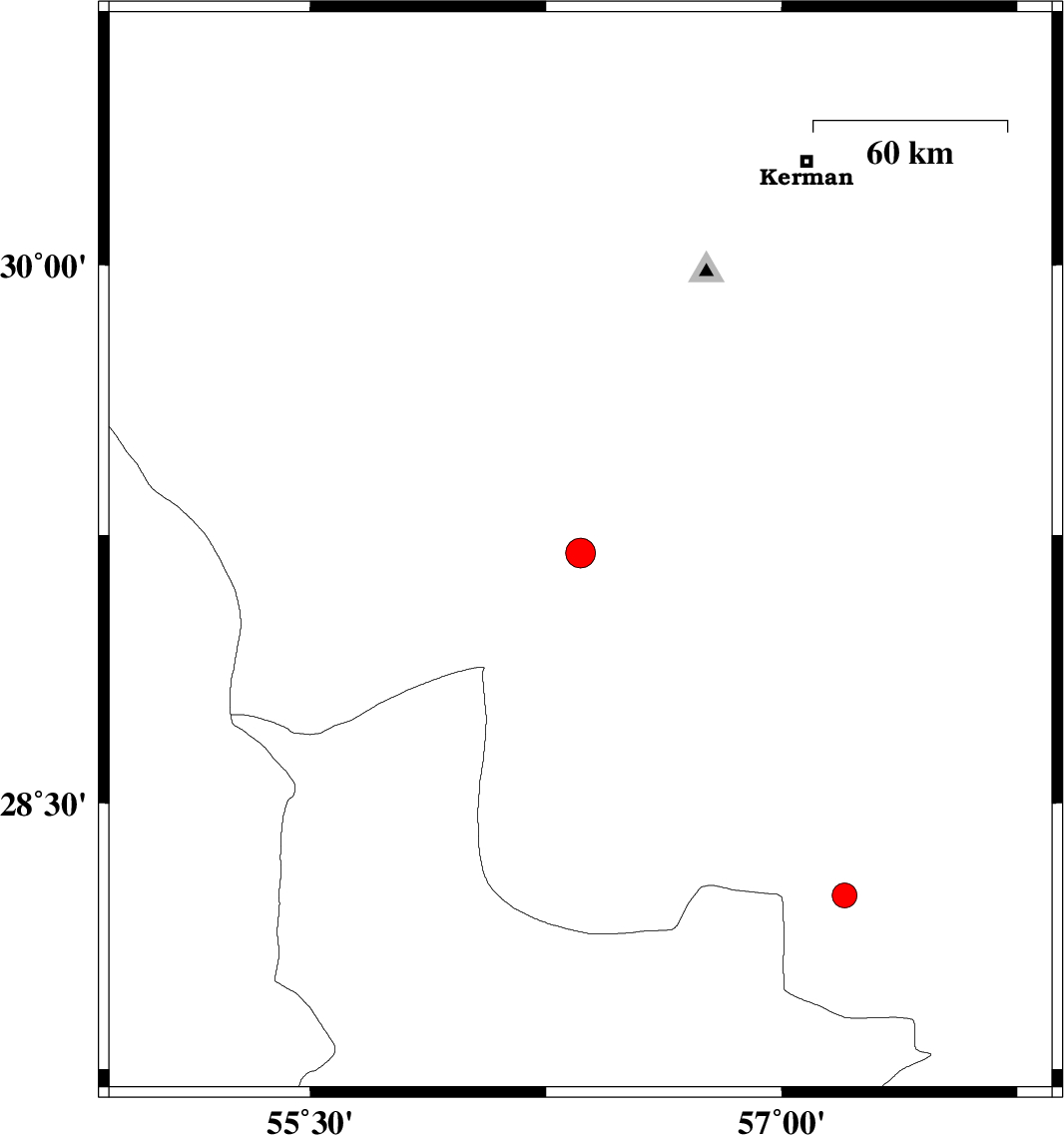 2019/05/29 | 16:01:35.8 | 20:31:35.8 | 28.24 | 57.2 | 12 | ML:3.5 | Kerman Province, 58 km North-West of Kahnuj |