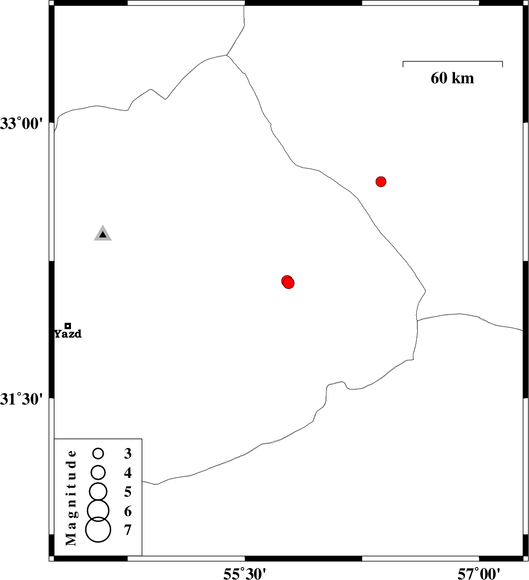 2019/05/30 | 15:15:41.5 | 19:45:41.5 | 32.13 | 55.78 | 11 | ML:3.2 | Yazd Province, 69 km North-East of Bafq | ||