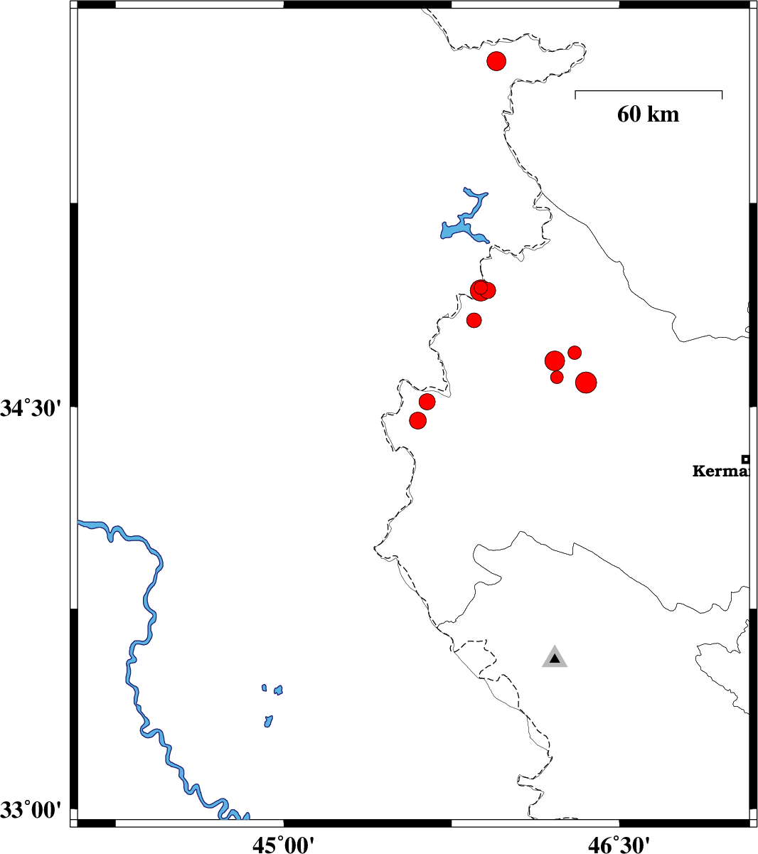2019/05/28 | 01:50:11.4 | 06:20:11.4 | 34.64 | 46.24 | 14 | ML:2.7 | Kermanshah Province, 29 km South-West of Javanrud | ||