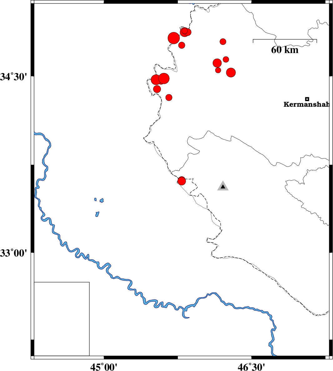 2019/05/11 | 04:19:11.1 | 08:49:11.1 | 34.32 | 45.66 | 6 | ML:2.9 | Kermanshah Province, 23 km South of Qasr-E-Shirin |