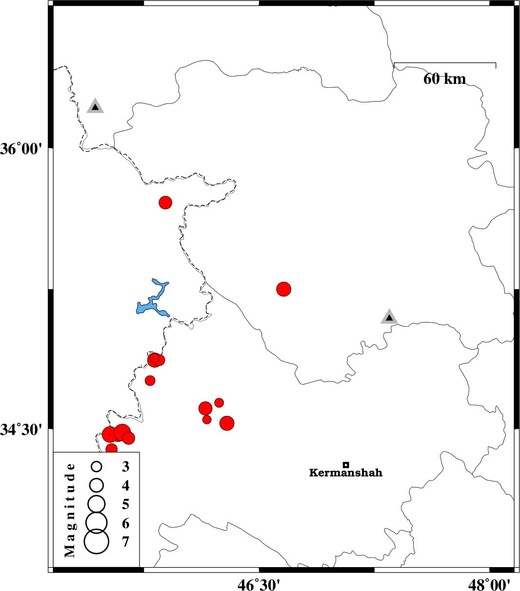 2019/06/12 | 18:02:58.5 | 22:32:58.5 | 34.45 | 45.65 | 14 | ML:3.7 | Kermanshah Province, 10 km of Qasr-E-Shirin | ||