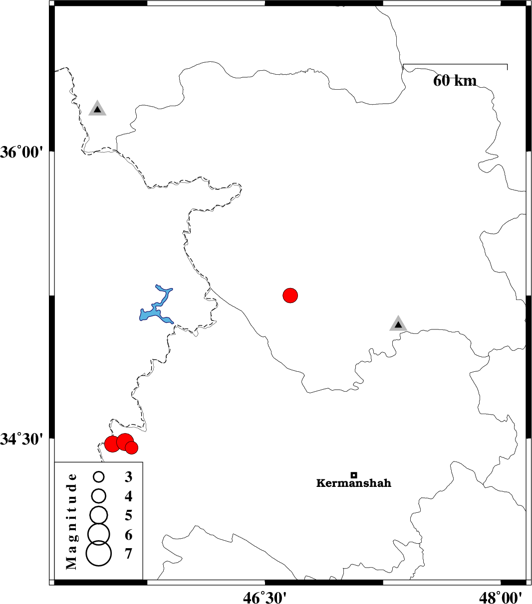 2019/06/12 | 18:02:58.5 | 22:32:58.5 | 34.45 | 45.65 | 14 | ML:3.7 | Kermanshah Province, 10 km of Qasr-E-Shirin | ||
