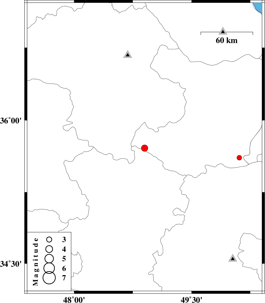 2019/06/14 | 04:21:02.9 | 08:51:02.9 | 35.71 | 48.9 | 10 | ML:3.8 | Ghazvin Province, 38 km North-West of Razan |