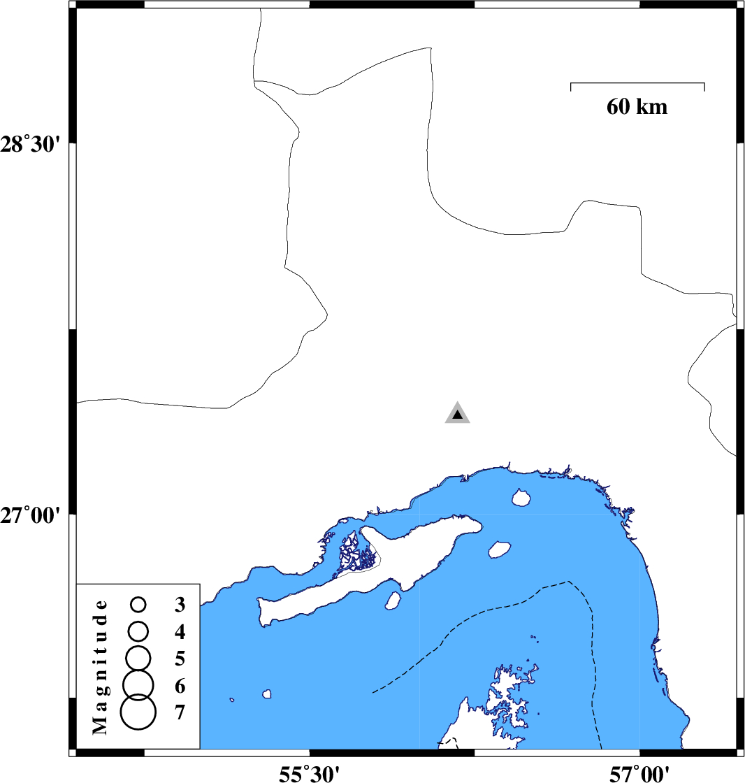 2019/06/17 | 13:32:25.8 | 18:02:25.8 | 27.54 | 55.94 | 10 | ML:4.3 | Hormozgan Province, 52 km North-West of Bandar-e abbas |