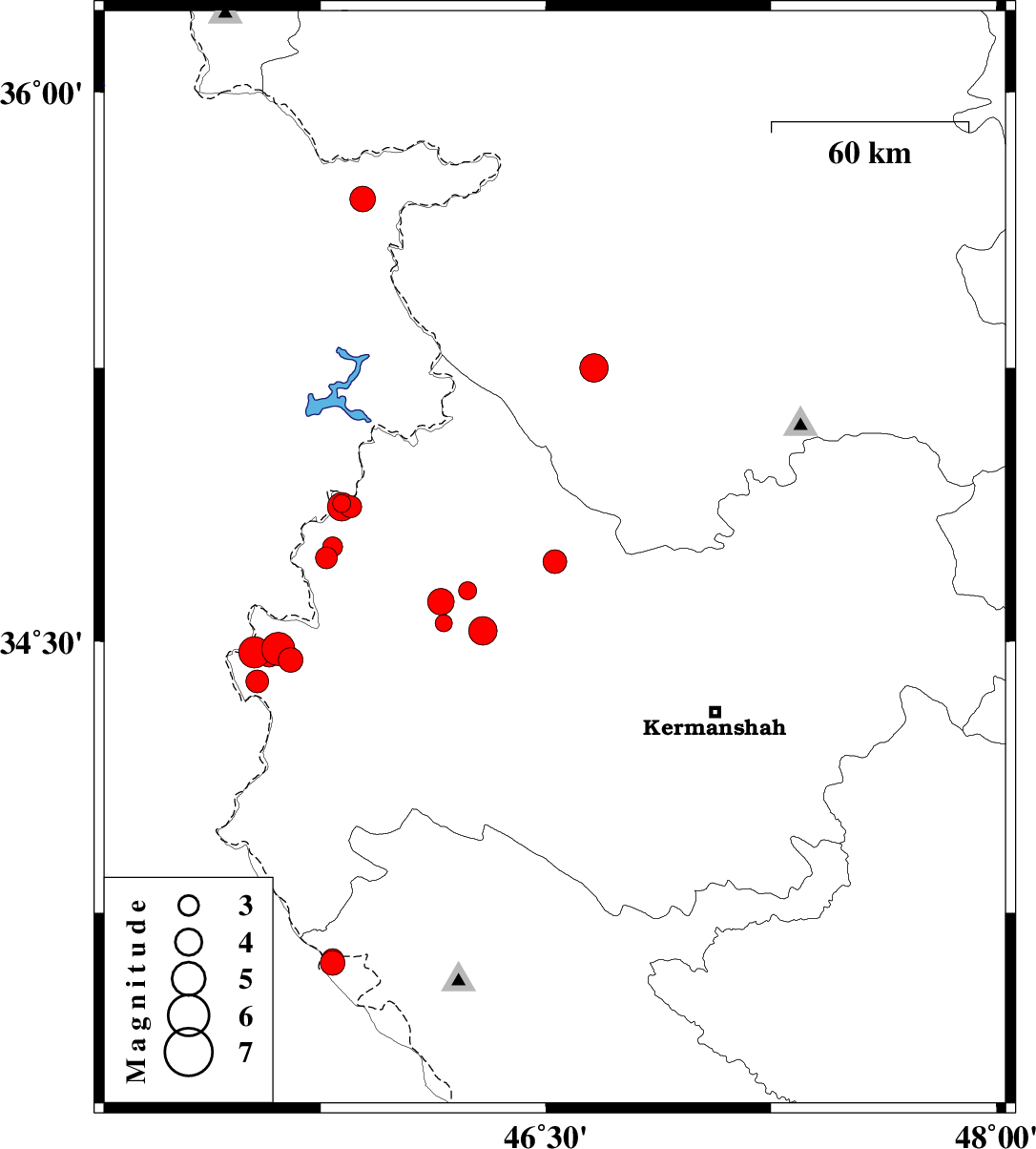 2019/06/12 | 18:02:58.5 | 22:32:58.5 | 34.45 | 45.65 | 14 | ML:3.7 | Kermanshah Province, 10 km of Qasr-E-Shirin | ||
