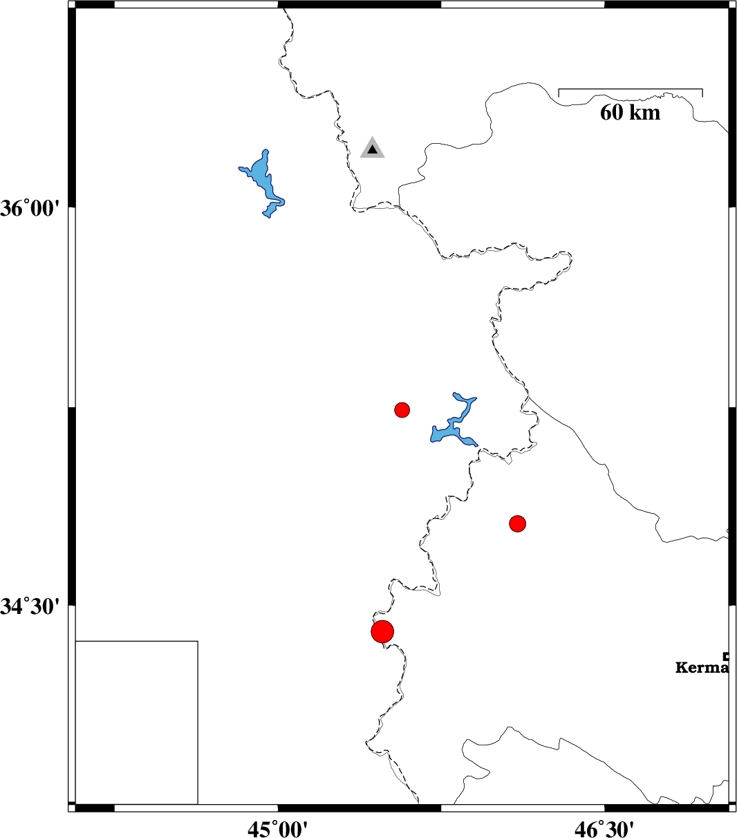 2019/06/23 | 16:51:59.2 | 21:21:59.2 | 34.4 | 45.48 | 6 | ML:4.6 | Kermanshah Province, 16 km South-West of Qasr-E-Shirin |