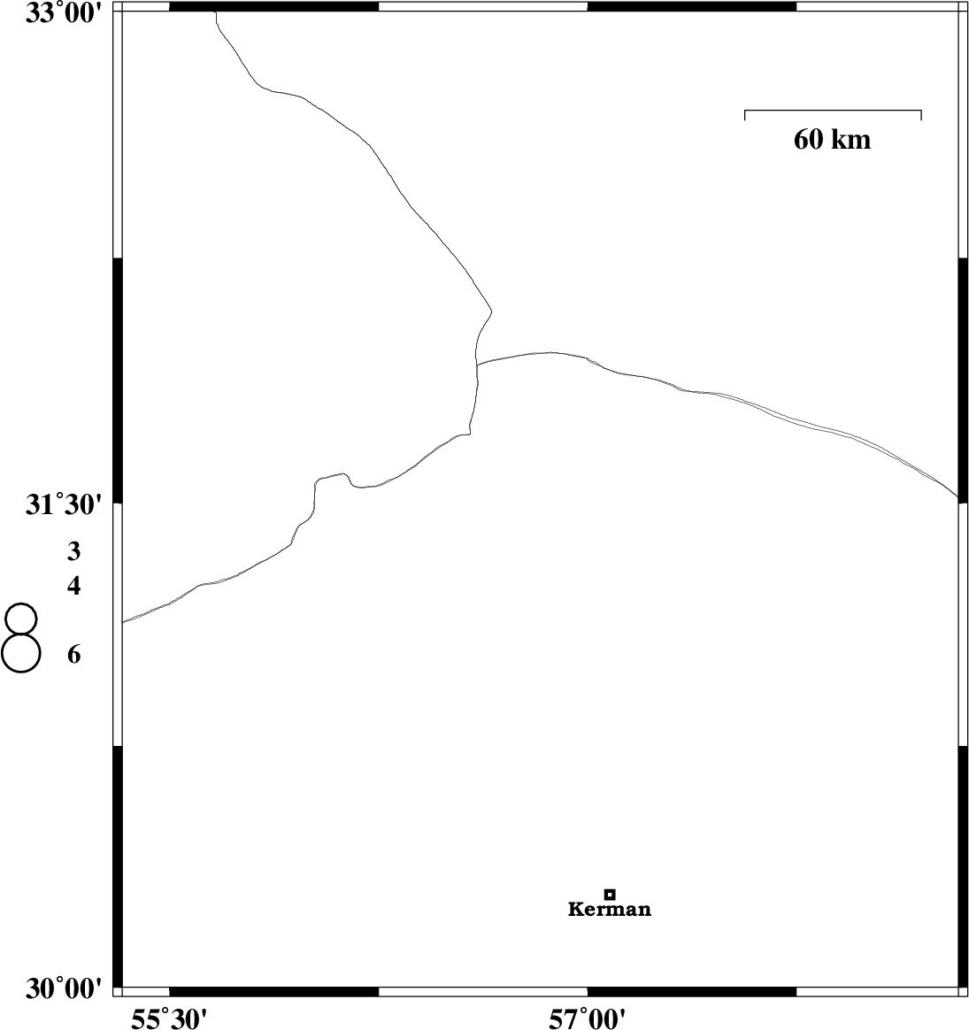 2019/06/25 | 13:29:11.9 | 17:59:11.9 | 30.67 | 57.37 | 12 | ML:3.4 | Kerman Province, 51 km North-East of Kerman | ||