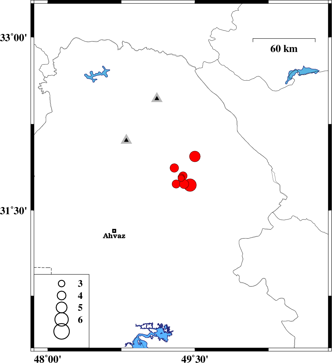 2019/07/08 | 07:00:32.6 | 11:30:32.6 | 31.72 | 49.45 | 10 | Mb:5.8 | Khoozestan Province, 28 km South-East of Masjed Soleyman |