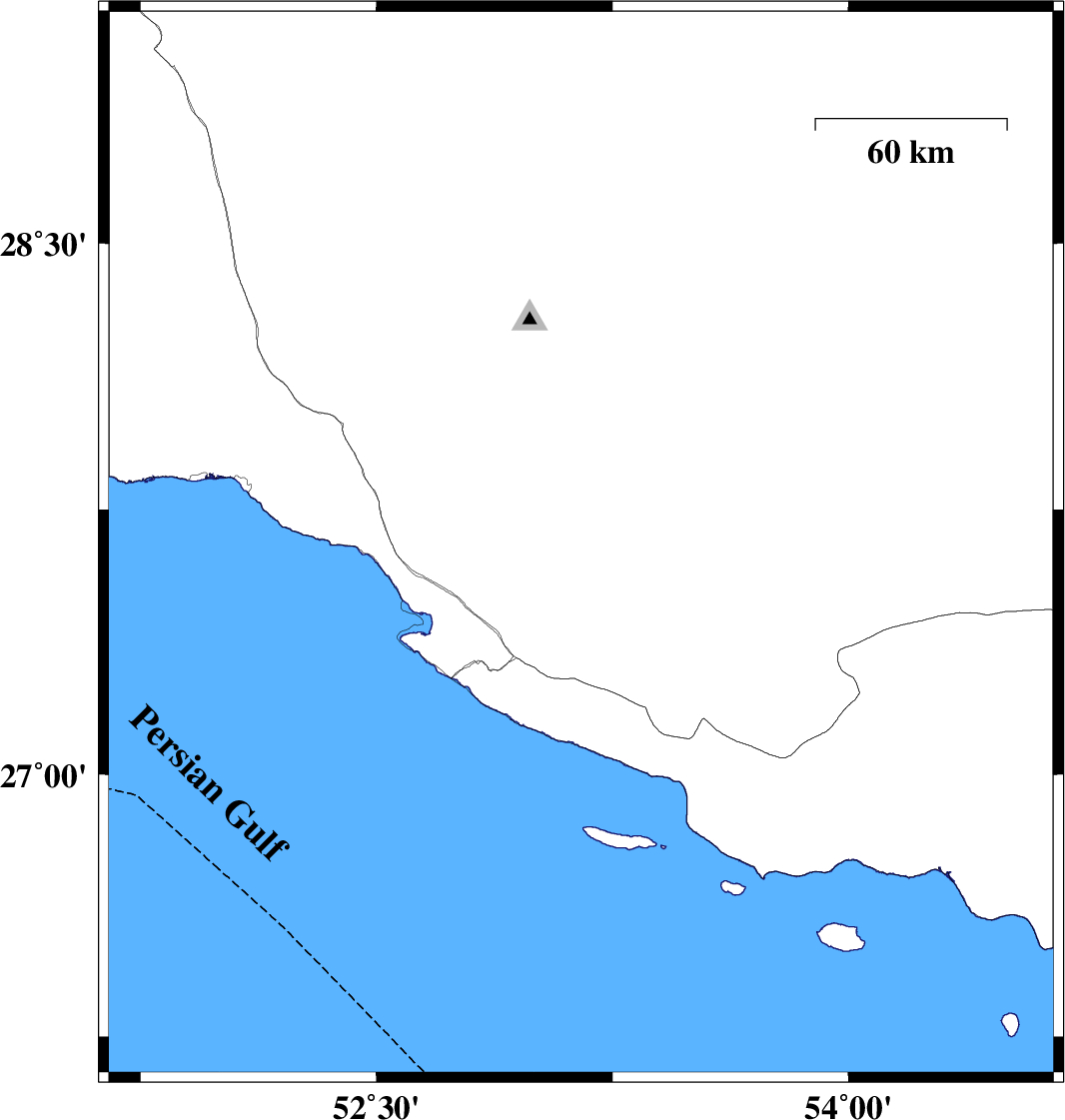 2019/06/23 | 22:58:21.9 | 03:28:21.9 | 27.6 | 53.15 | 10 | ML:3.5 | Fars Province, 30 km North of Lamerd | ||