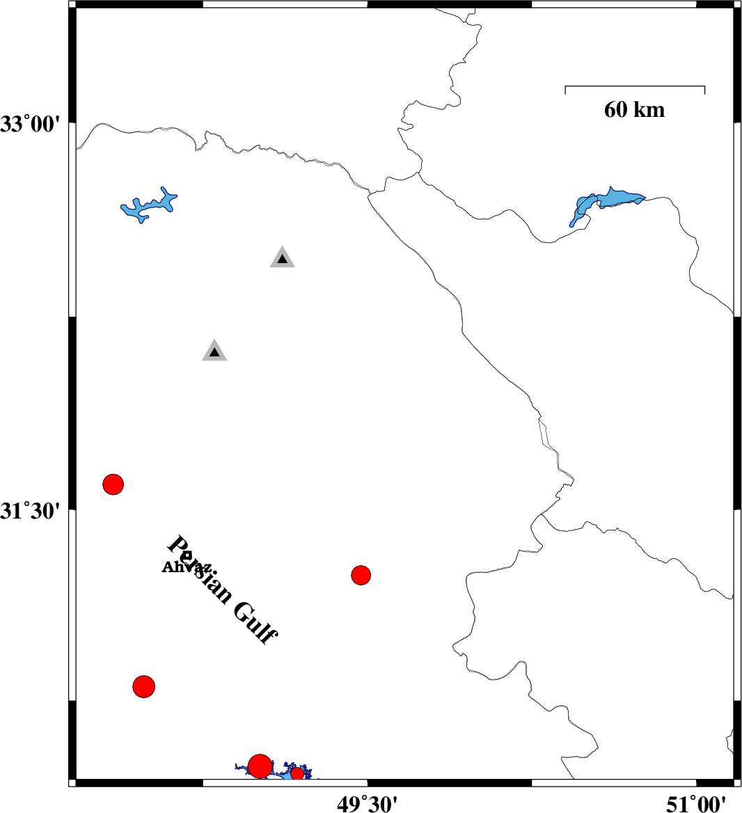 2019/07/17 | 22:53:08.2 | 03:23:08.2 | 30.91 | 48.63 | 10 | ML:3.5 | Khoozestan Province, 29 km North of Shadegan | ||