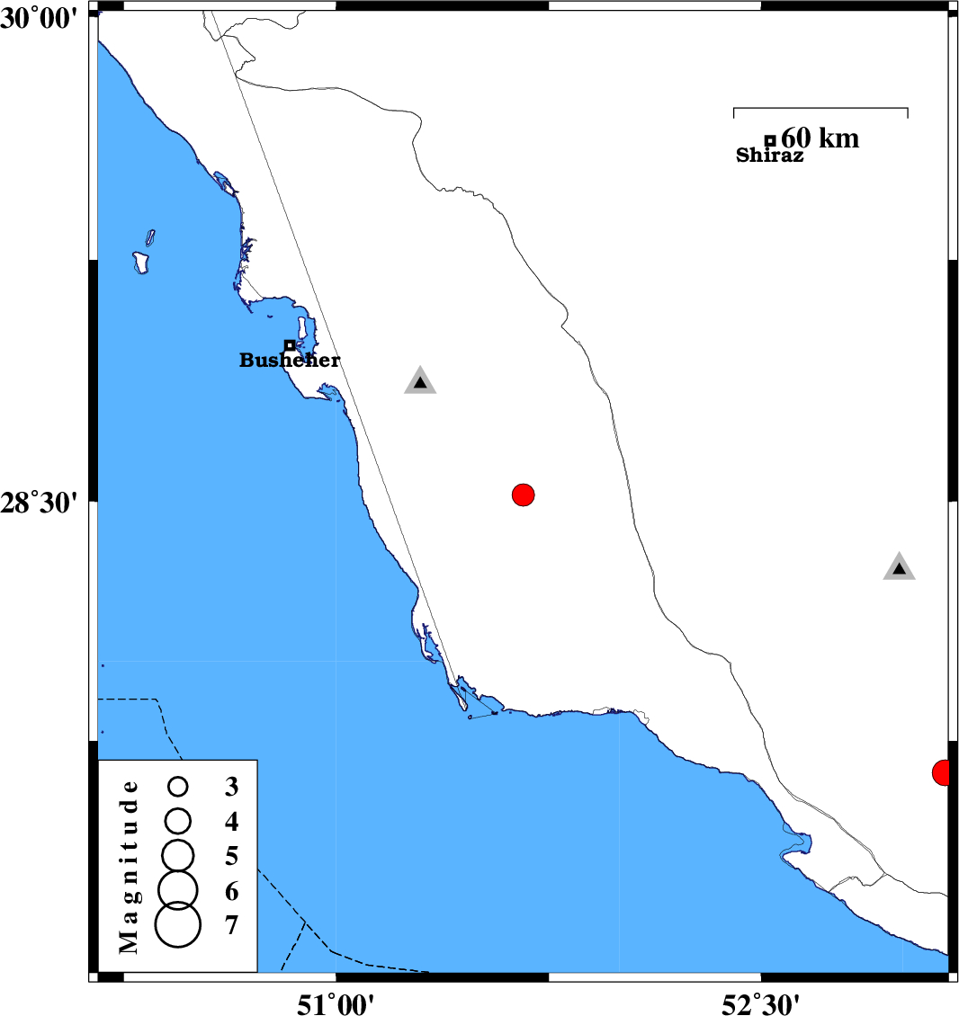 2019/07/23 | 19:41:56.2 | 00:11:56.2 | 28.52 | 51.66 | 15 | ML:3.5 | Bushehr Province, 32 km South-East of Khormog | ||