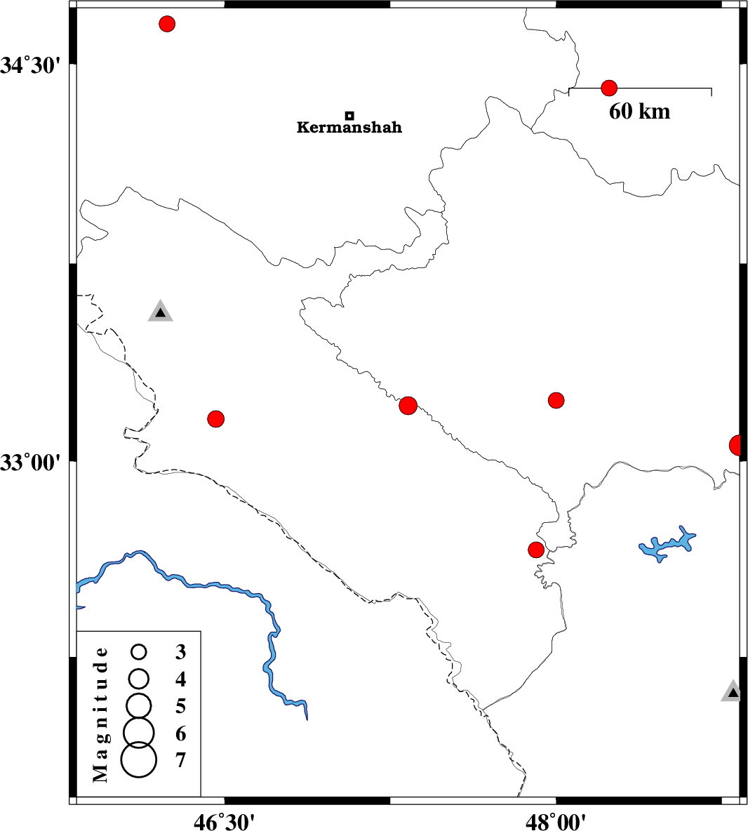 2019/07/23 | 19:03:16.9 | 23:33:16.9 | 33.23 | 48 | 14 | ML:3.2 | Lorestan Province, 28 km -East of Pol-e dokhtar | ||