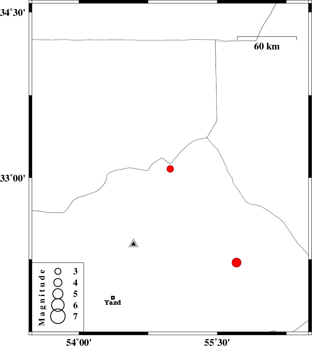 2019/08/17 | 08:01:59.2 | 12:31:59.2 | 33.08 | 54.99 | 12 | ML:3.4 | Yazd Province, 124 km North-East of Ardakan | ||