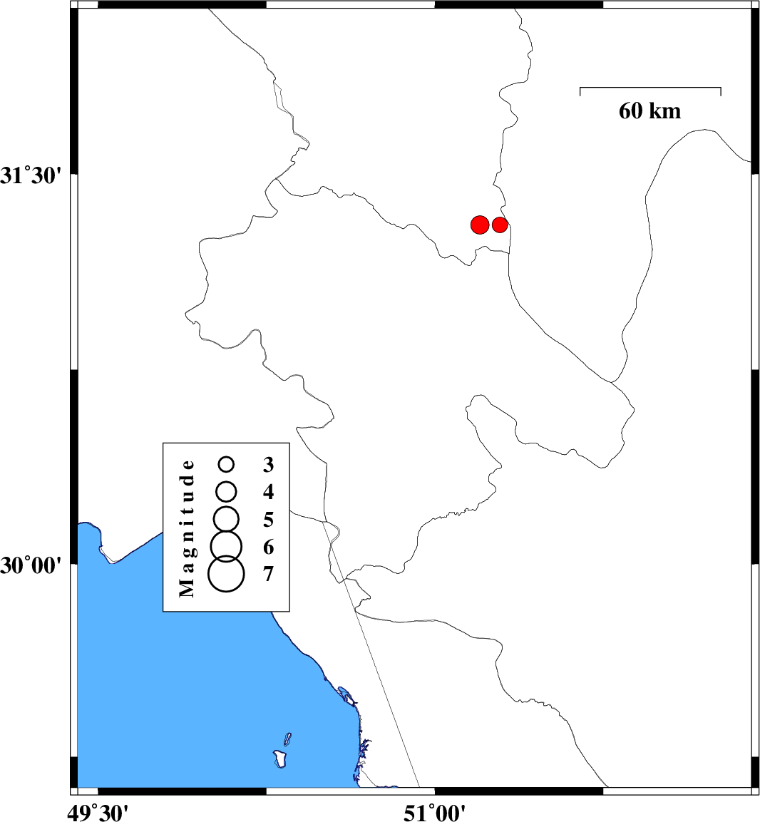 2019/08/27 | 07:12:45.2 | 11:42:45.2 | 30.63 | 50.82 | 10 | ML:3.6 | Kohkiluieh va boyerahmad Province, 31 km North of Dogonbadan |