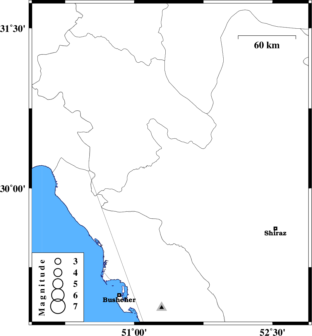 2019/09/09 | 03:33:47.0 | 08:03:47.0 | 30.23 | 51.39 | 22 | ML:3.2 | Fars Province, 18 km North-West of Nurabad |