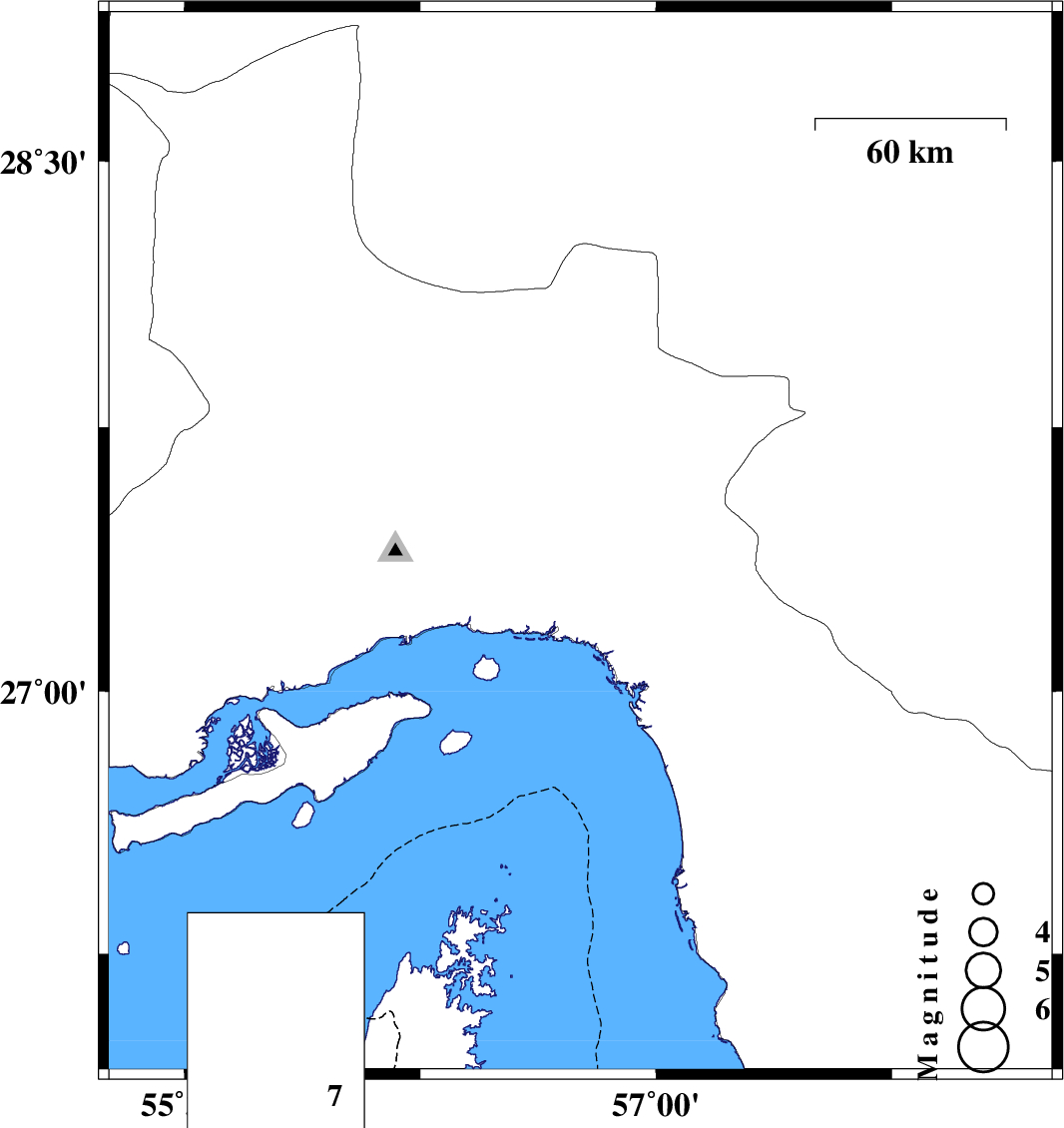2019/09/16 | 16:55:45.3 | 21:25:45.3 | 27.84 | 56.29 | 15 | ML:4.6 | Hormozgan Province, 73 km North of Bandar-e abbas |