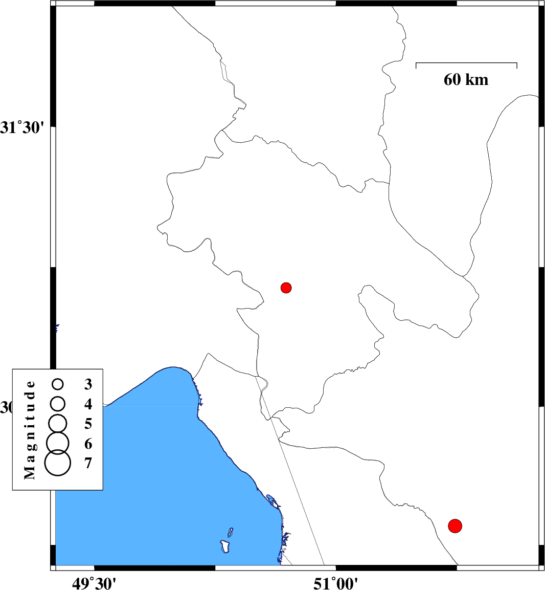 2019/10/02 | 08:35:12.9 | 12:05:12.9 | 29.96 | 51.81 | 5 | ML:2.6 | Fars Province, 33 km South-East of Nurabad | ||