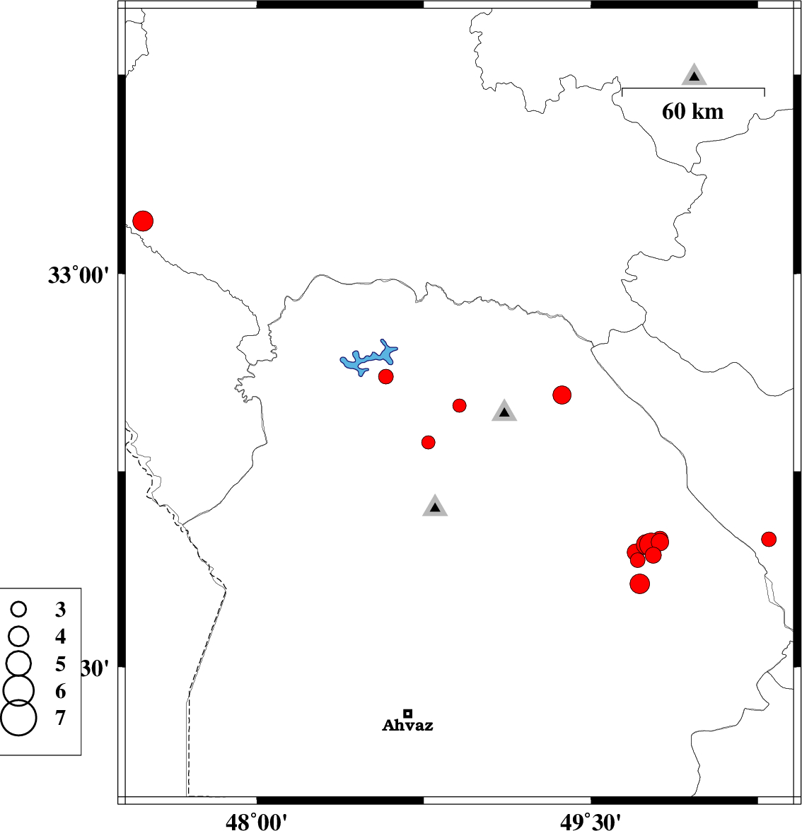 2019/09/29 | 11:19:23.9 | 14:49:23.9 | 32.61 | 48.58 | 14 | ML:3 | Khoozestan Province, 27 km North-East of Andimeshk | ||