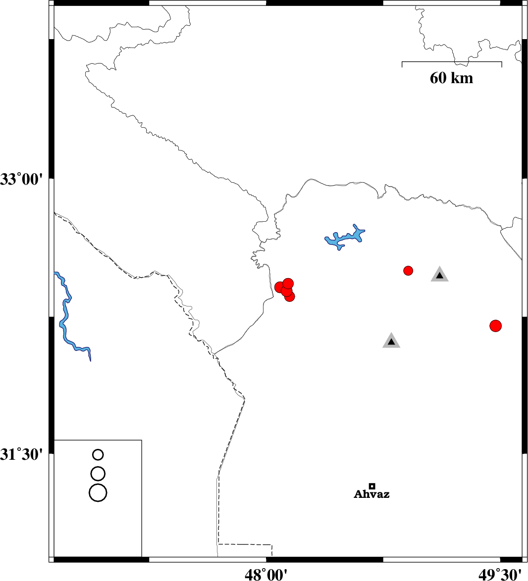 2019/10/13 | 01:26:27.0 | 04:56:27.0 | 32.36 | 48.15 | 14 | ML:2.9 | Khoozestan Province, 20 km North of Shush | ||