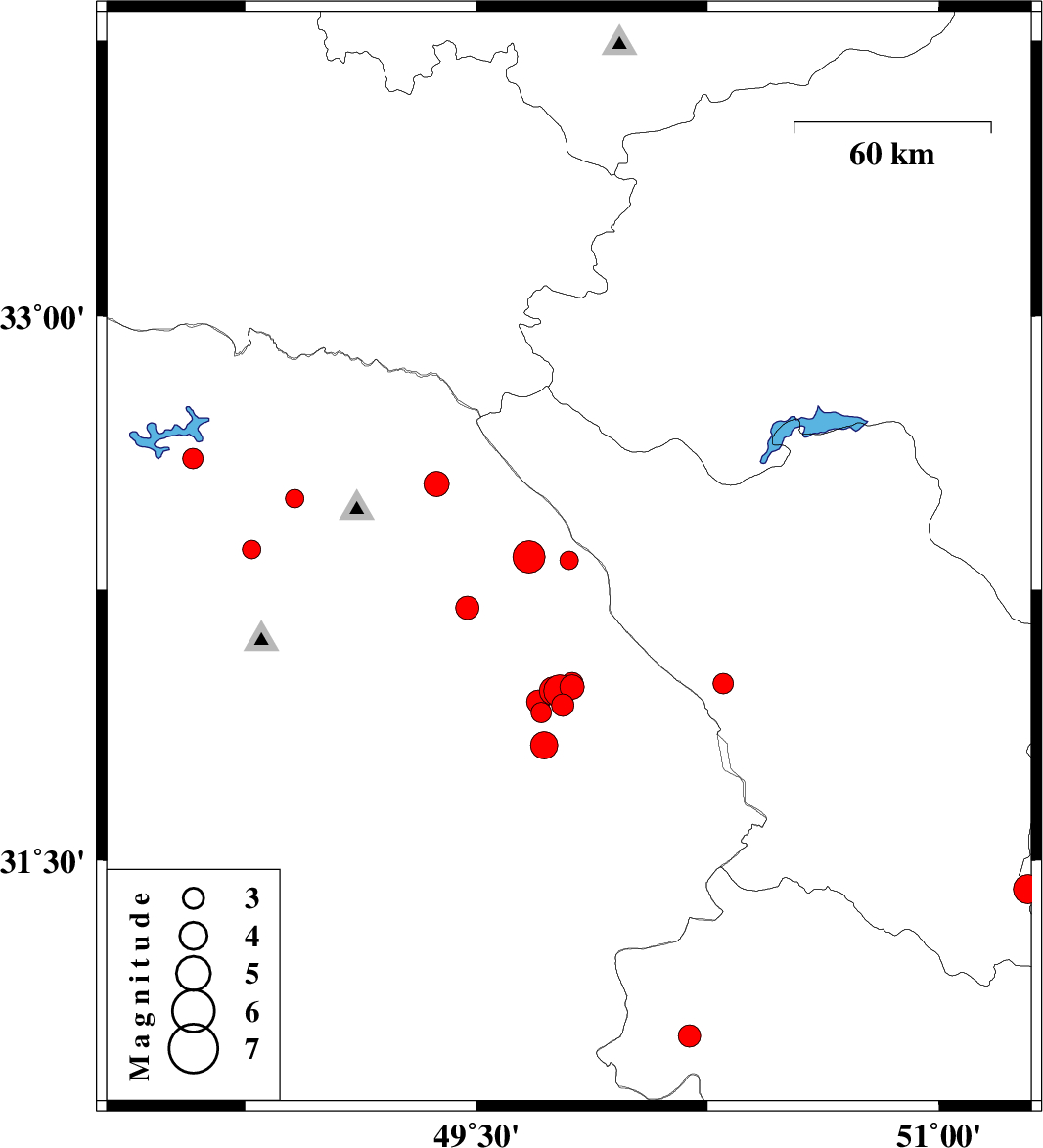 2019/09/24 | 07:20:10.1 | 10:50:10.1 | 31.94 | 49.7 | 19 | ML:3.4 | Khoozestan Province, 20 km North-West of Izeh | ||