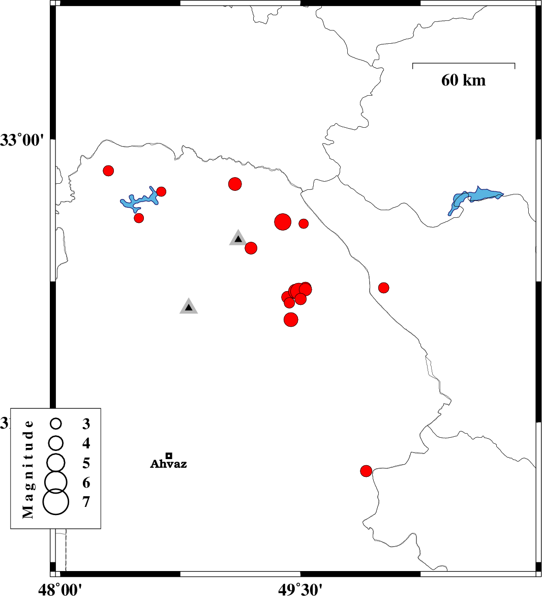 2019/10/13 | 01:26:27.0 | 04:56:27.0 | 32.36 | 48.15 | 14 | ML:2.9 | Khoozestan Province, 20 km North of Shush | ||