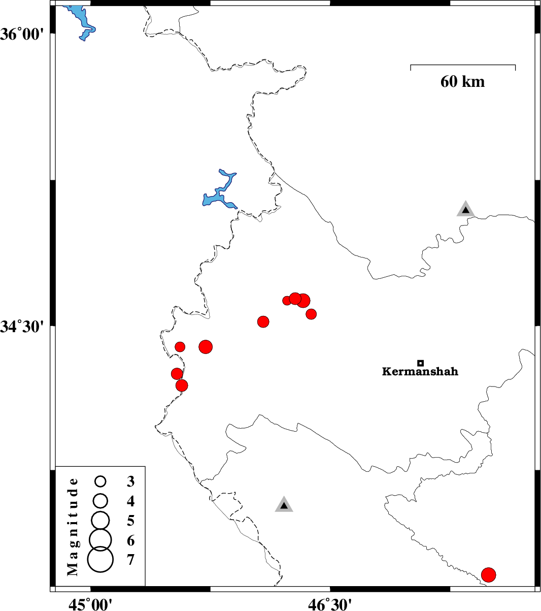 2019/09/27 | 15:14:08.3 | 18:44:08.3 | 34.52 | 46.08 | 14 | ML:3.3 | Kermanshah Province, 19 km -East of Sar-e pol-e zahab | ||