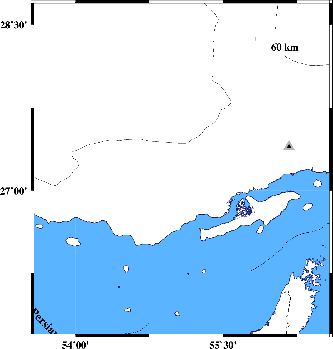 2019/10/21 12:06:32.8 15:36:32.8 27.2655.168 ML:4 Hormozgan Province, 79 km -East of Bastak