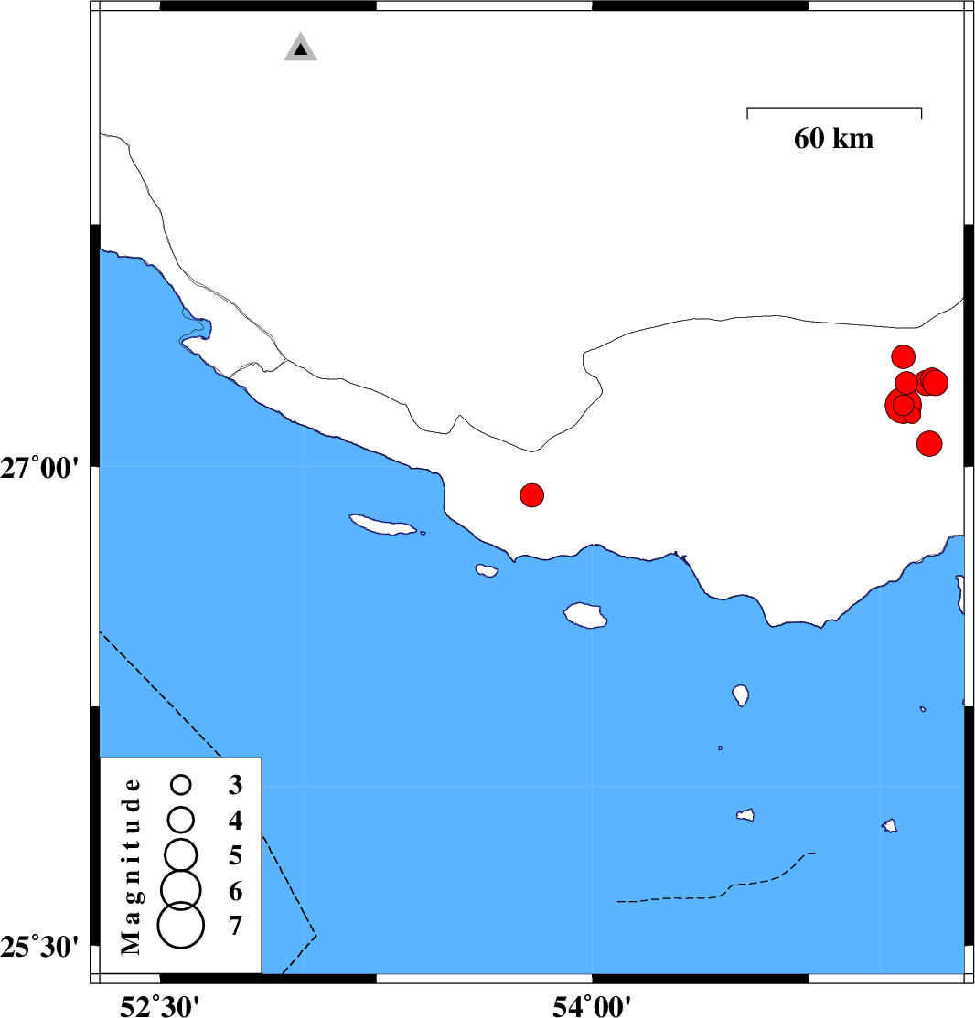 2019/10/22 | 04:33:20.1 | 08:03:20.1 | 27.07 | 55.17 | 14 | ML:3.9 | Hormozgan Province, 68 km North-East of Bandar-e lengeh | ||
