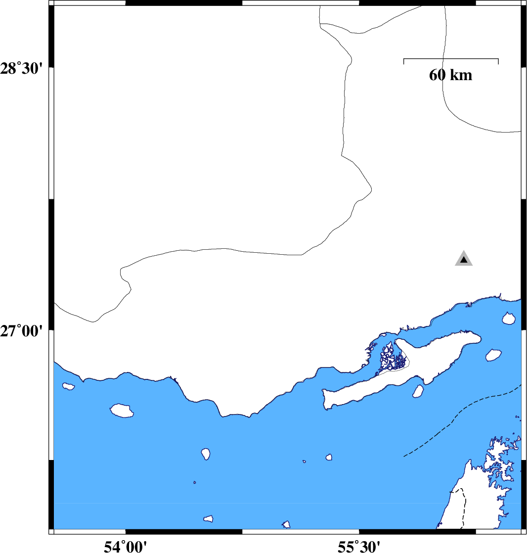 2019/11/04 | 00:18:40.9 | 03:48:40.9 | 26.06 | 54.85 | 14 | ML:4.6 | Persian Gulf, 28 km North-West of Abu Musa | ||