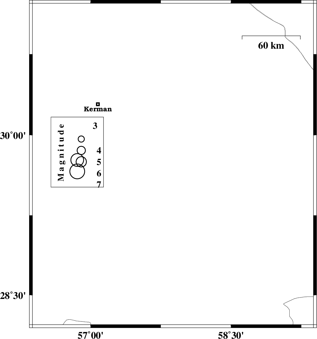 2019/11/24 | 02:11:50.0 | 05:41:50.0 | 29.72 | 57.88 | 14 | ML:2.9 | Kerman Province, 82 km North-West of Bam |