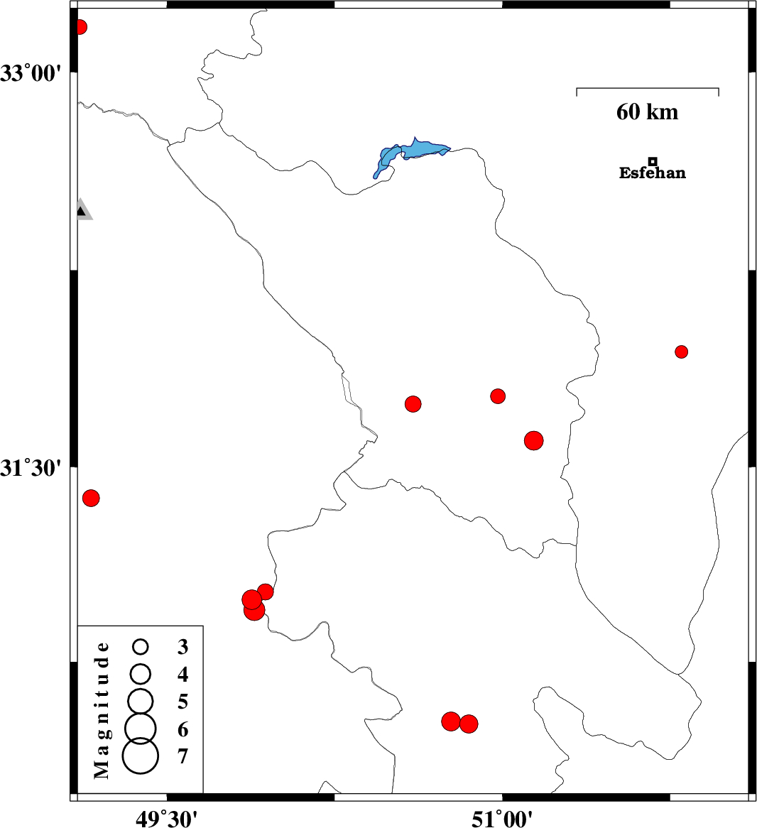 2019/11/27 | 00:46:46.5 | 04:16:46.5 | 31.94 | 51.8 | 10 | ML:2.5 | Esfahan Province, 10 km of Shahreza | ||
