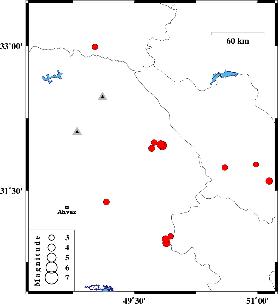 2019/11/23 | 10:57:37.9 | 14:27:37.9 | 30.95 | 49.89 | 10 | ML:4.2 | Khoozestan Province, 27 km North-East of Omidiyeh | ||