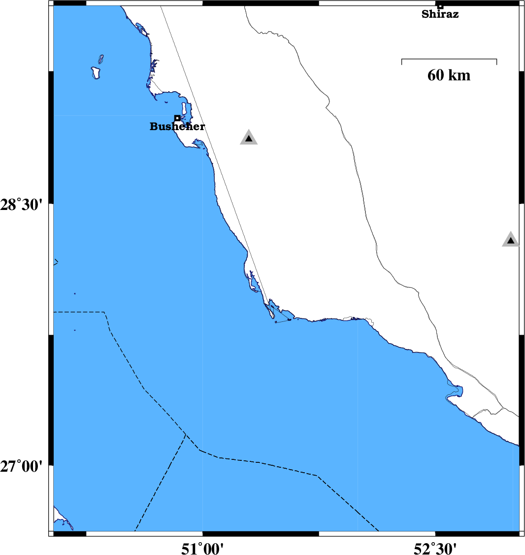 2019/12/03 | 14:43:07.4 | 18:13:07.4 | 28.77 | 51.63 | 15 | ML:4 | Bushehr Province, 29 km North-East of Khormog | ||