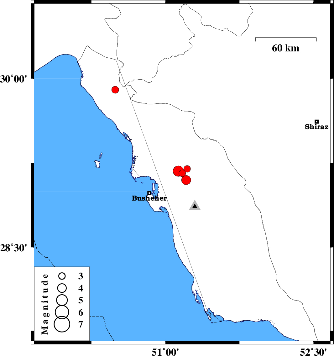 2020/01/08 | 03:19:14.9 | 06:49:14.9 | 29.1 | 51.21 | 10 | ML:4.2 | Bushehr Province, 18 km South of Borazjan | ||
