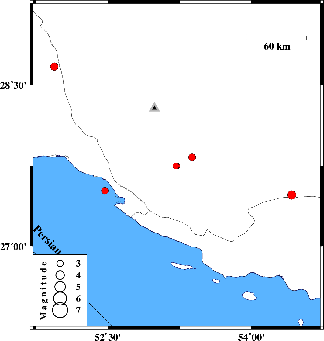 | 2020/09/19 | 10:18:27.7 | 14:48:27.7 | 27.52 | 52.47 | 10 | ML:3.2 | Persian Gulf, 41 km -West of Mehr | ||