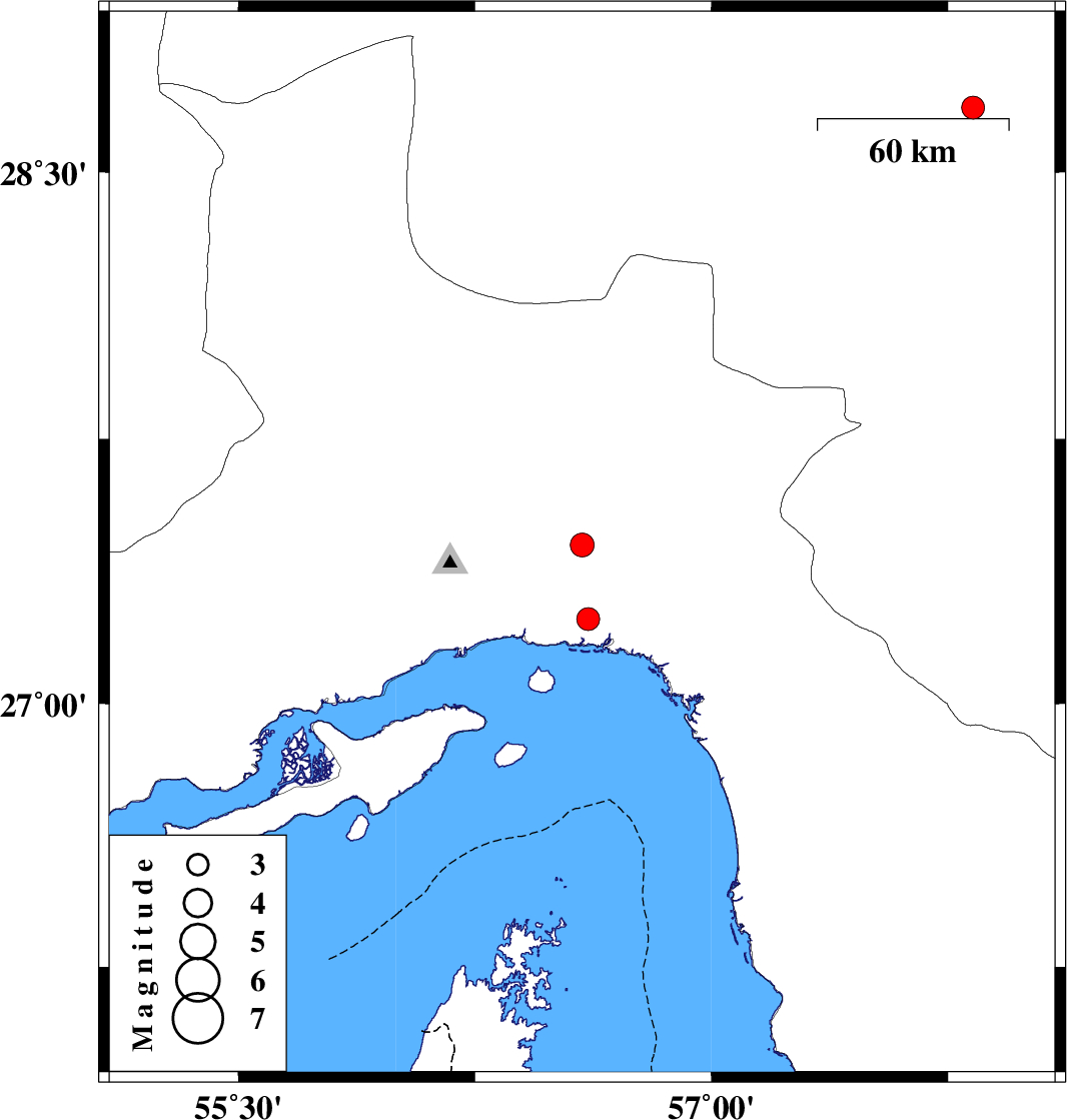 | 2020/10/24 | 08:01:38.1 | 11:31:38.1 | 27.45 | 56.59 | 10 | ML:3.4 | Hormozgan Province, 42 km North-East of Bandar-e abbas | ||