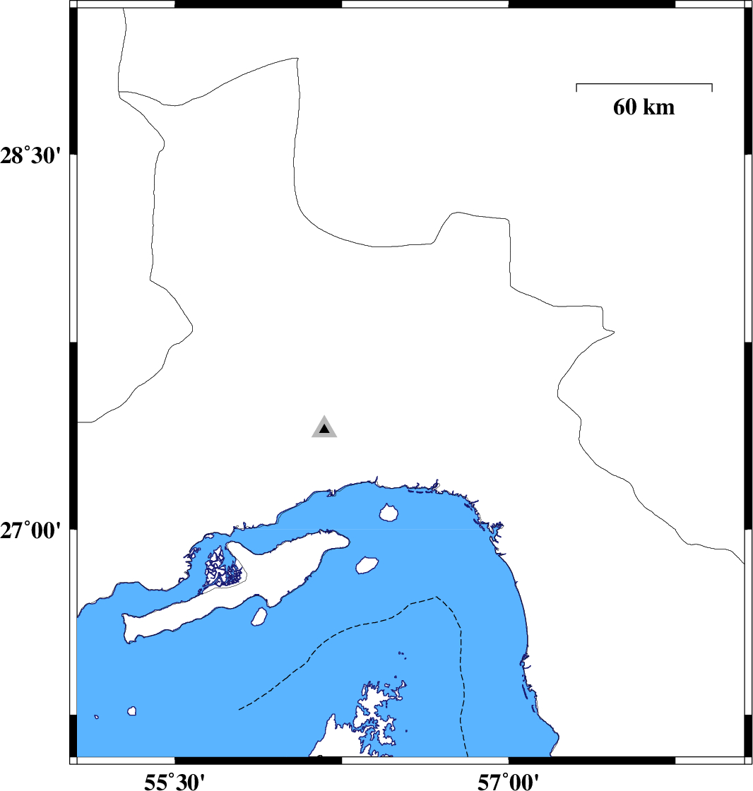 | 2020/09/22 | 19:43:33.8 | 23:13:33.8 | 27.4 | 55.55 | 21 | ML:4.1 | Hormozgan Province, 76 km North-West of Bandar-e abbas | ||