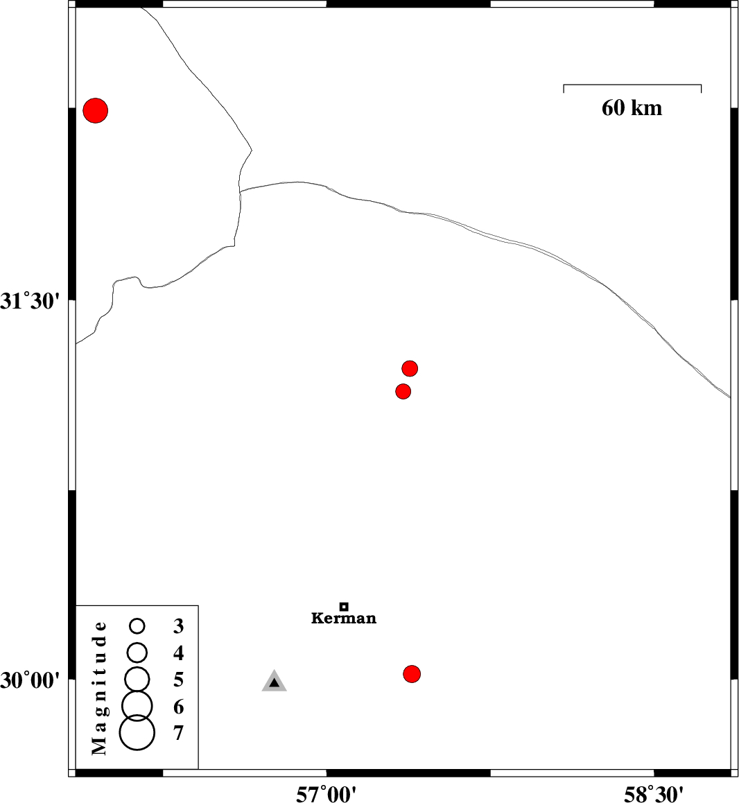 | 2020/11/03 | 19:38:23.8 | 23:08:23.8 | 30.02 | 57.39 | 10 | ML:3.5 | Kerman Province, 42 km South-East of Kerman | ||