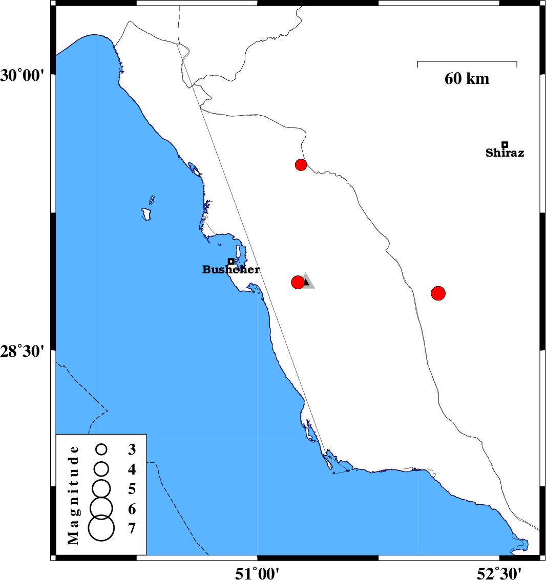 | 2021/01/04 | 12:58:54.6 | 16:28:54.6 | 28.87 | 51.25 | 10 | ML:3.7 | Bushehr Province, 1 km of Ahram | ||
