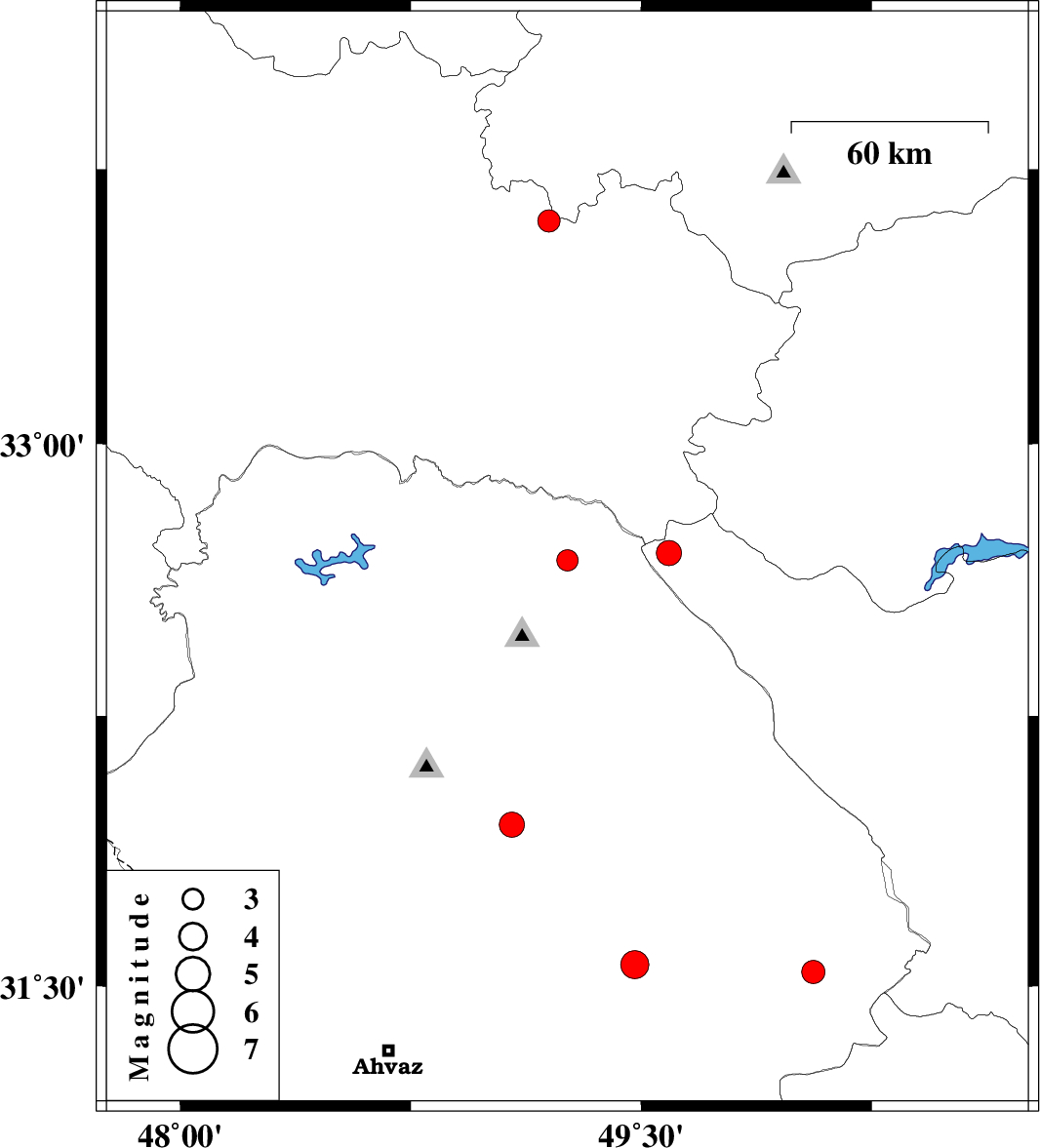 | 2020/12/27 | 15:56:52.3 | 19:26:52.3 | 31.56 | 49.48 | 10 | ML:4.1 | Khoozestan Province, 34 km North-West of Ramhormoz | ||