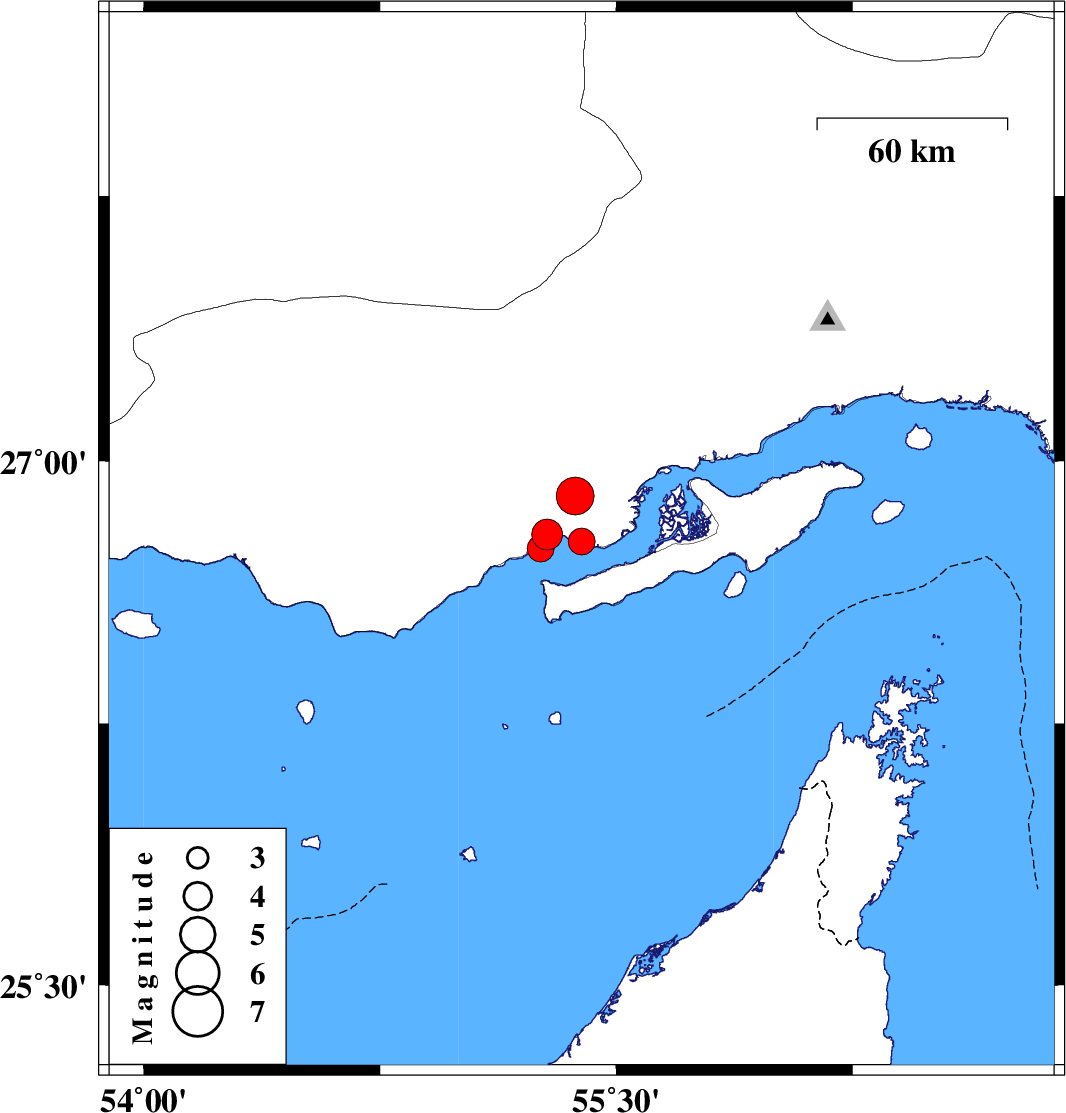 | 2021/01/17 | 02:50:16.3 | 06:20:16.3 | 26.79 | 55.28 | 10 | ML:4.4 | Hormozgan Province, 52 km North-East of Bandar-e lengeh | ||
