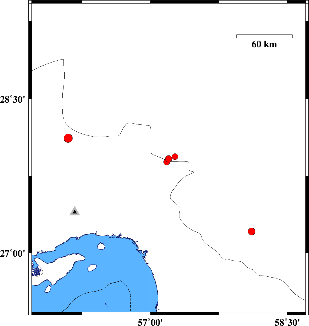 | 2021/01/25 | 20:23:48.1 | 23:53:48.1 | 27.94 | 57.27 | 10 | ML:3 | Kerman Province, 42 km -West of Kahnuj | ||
