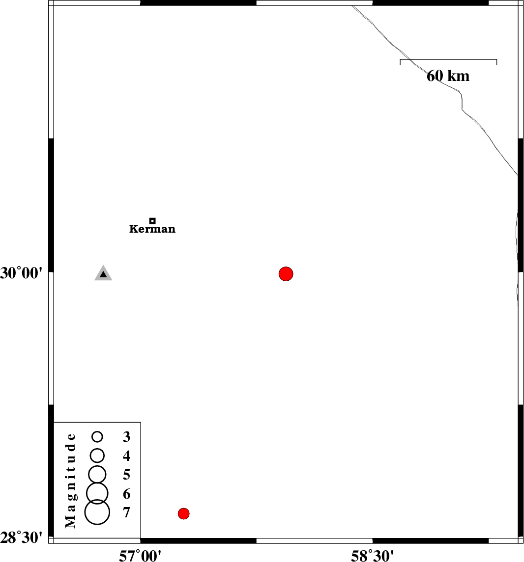 | 2021/02/03 | 07:22:30.2 | 10:52:30.2 | 29.99 | 57.94 | 10 | ML:4.1 | Kerman Province, 89 km South-East of Kerman | ||