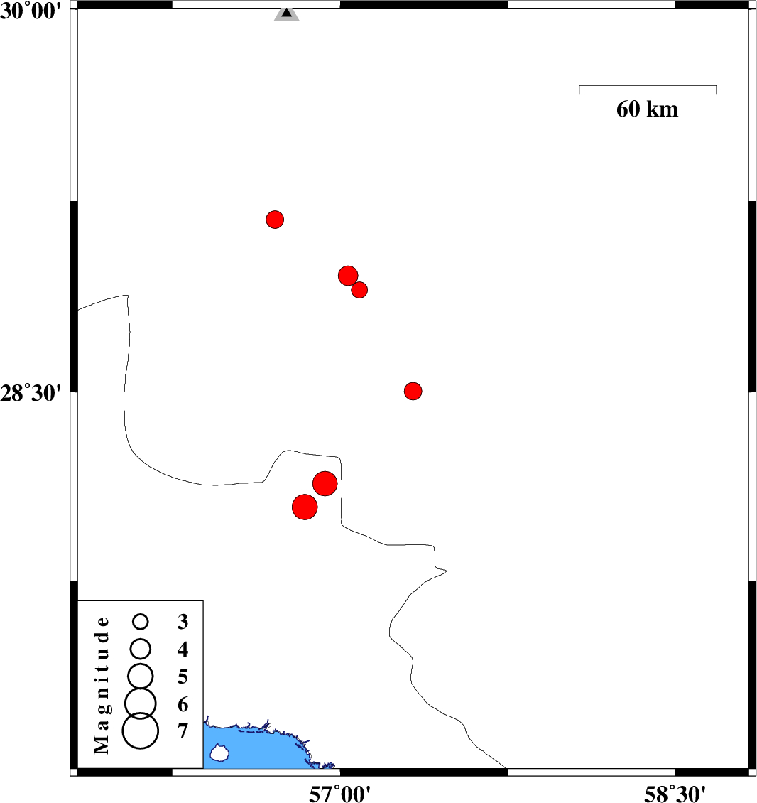 | 2021/03/20 | 00:36:08.3 | 04:06:08.3 | 27.357 | 56.127 | 6 | ML:3.9 | Hormozgan Province, 25 km North-West of Bandar-e abbas | ||