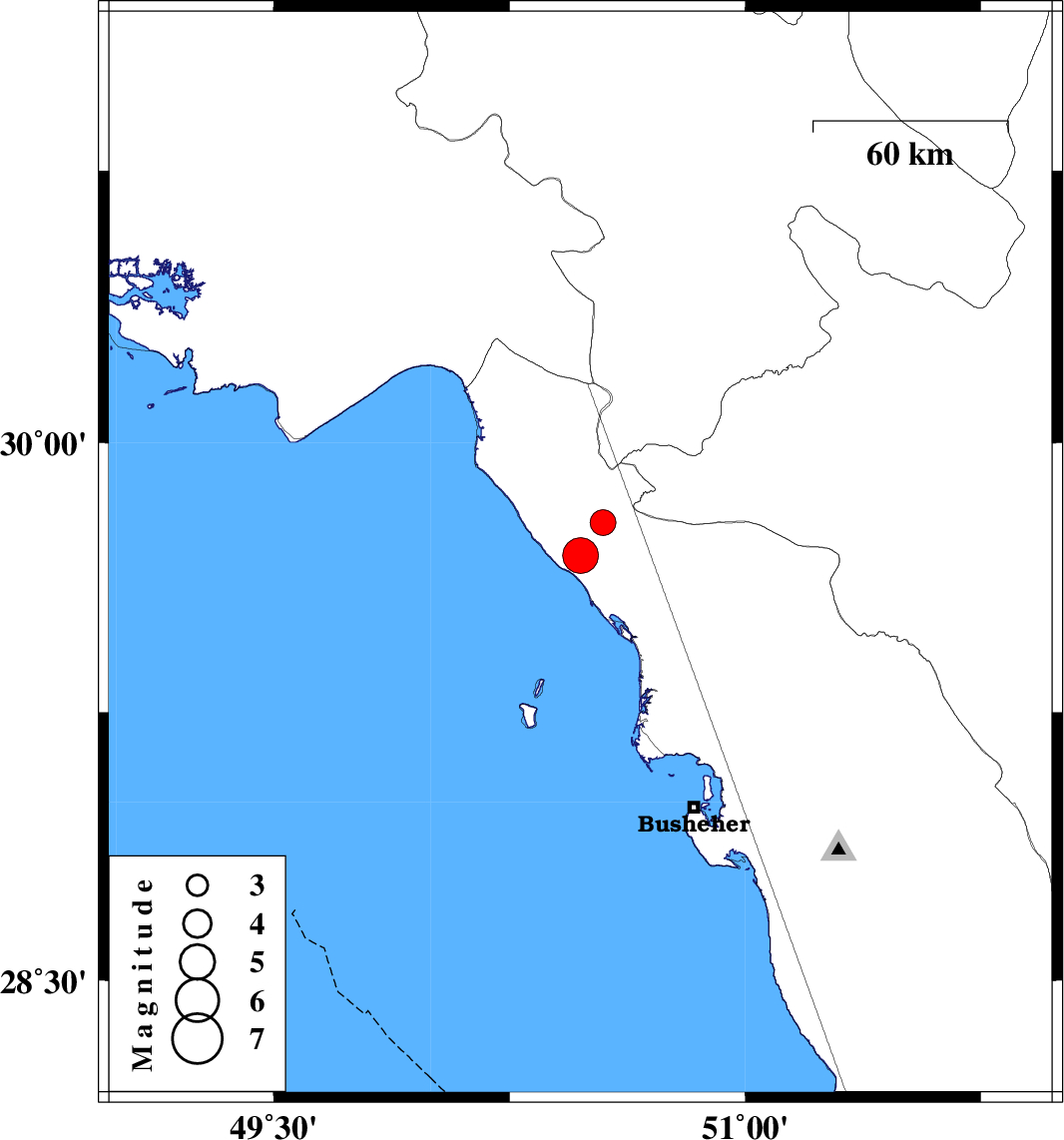 | 2021/05/21 | 11:52:16.1 | 16:22:16.1 | 29.687 | 50.476 | 12 | ML:5.1 | Bushehr Province, 13 km North of Bandar-e genaveh | ||