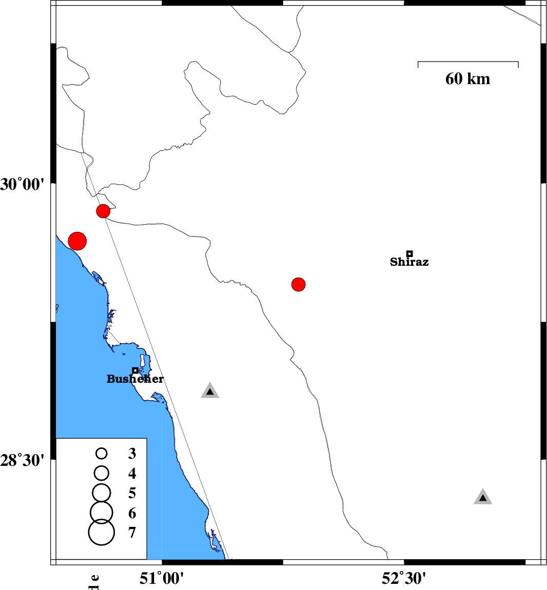 | 2021/05/23 | 09:38:49.2 | 14:08:49.2 | 29.849 | 50.637 | 12 | ML:3.8 | Bushehr Province, 33 km North-East of Bandar-e genaveh | ||