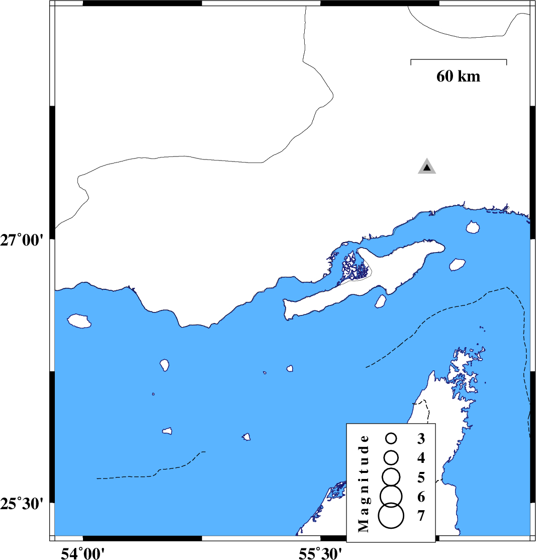 | 2021/06/19 | 17:43:50.6 | 22:13:50.6 | 26.811 | 55.322 | 16 | ML:3.7 | Hormozgan Province, 57 km North-East of Bandar-e lengeh | ||