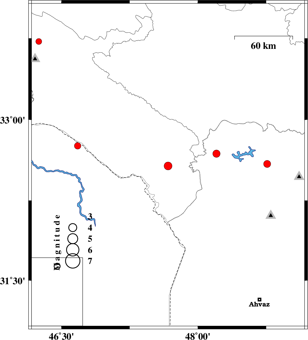 | 2021/06/20 | 13:21:00.9 | 17:51:00.9 | 32.571 | 47.672 | 12 | ML:4 | Ilam Province, 41 km South-East of Dehloran | ||